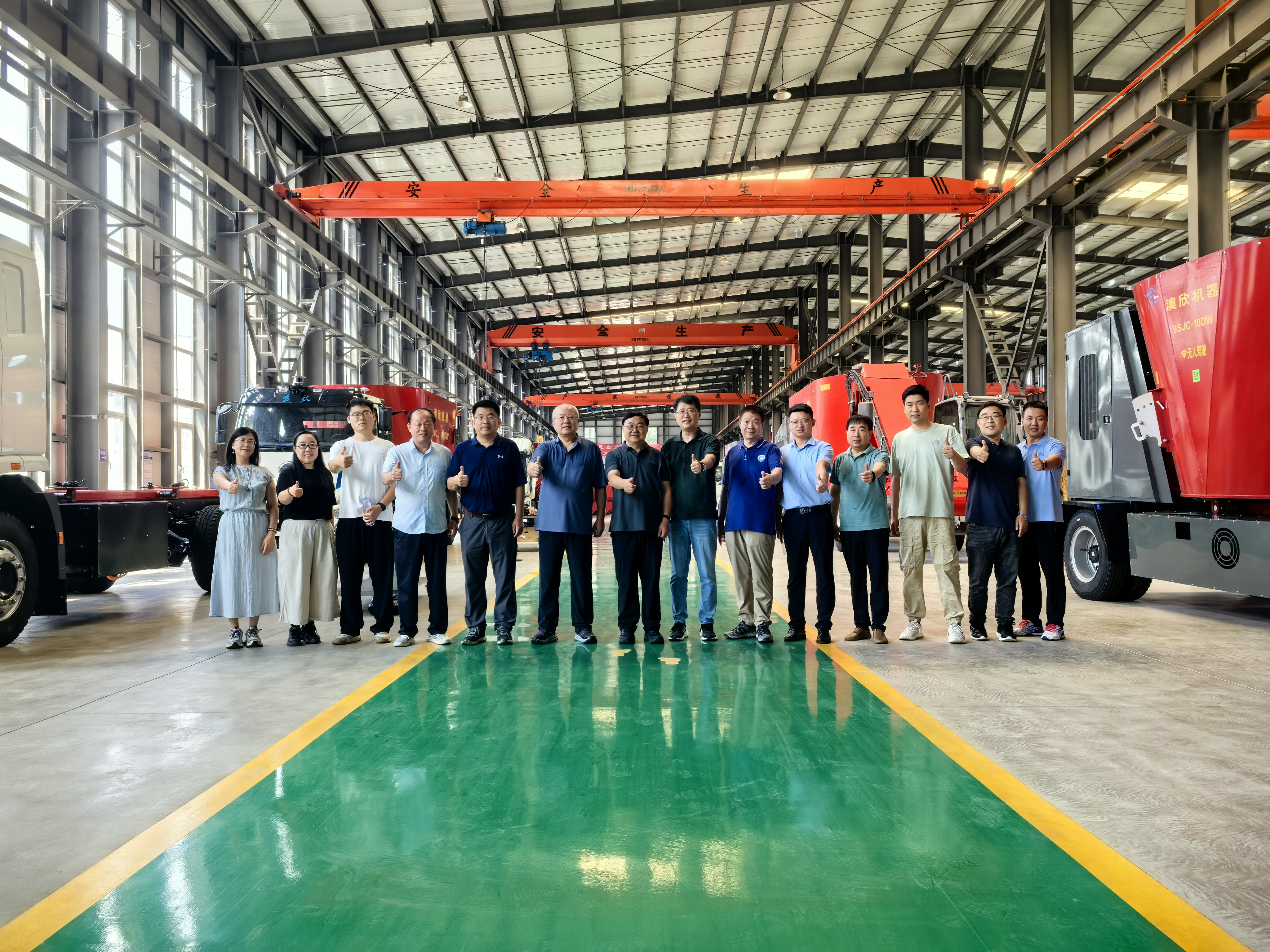 專家團(tuán)隊(duì)先后參觀了澳欣公司TMR制備機(jī)、燃油動(dòng)力撒料車及自走式TMR、電動(dòng)無(wú)人駕駛?cè)隽宪嚰败囕d式TMR、飼喂控制系統(tǒng)等設(shè)備生產(chǎn)車間和現(xiàn)場(chǎng)。